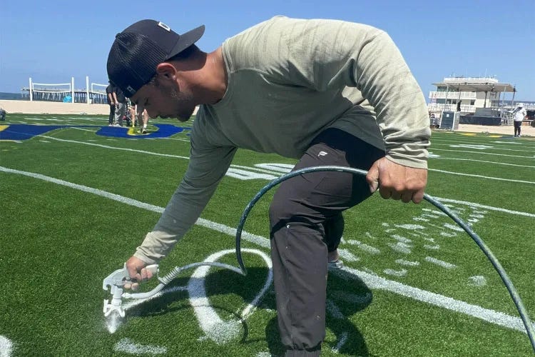Jordan wuxuu ahaa shaqaale caadi ah oo hagaajiya cawska garoomada ee SoFi Stadium iyo LA Memorial Coliseum. Shaqadiisu waxay ahayd inuu xariiqyada garoonka rinjiyeeyo ka hor kulamada NFL-ka. Maanta, shaqadaas wuxuu u beddelay shirkad u gaar ah (J Sprays) oo bishii u soo xareysa celcelis ahaan $6,500 (Lix kun iyo shan boqol oo dollar).